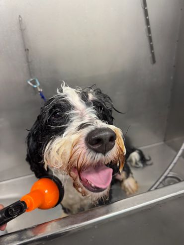 Bath service includes a full wash with gentle shampoo, nail trim, ear cleaning, and a brush-out to leave your dog feeling fresh.